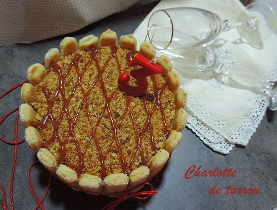 Las dos versiones me gustaban,pero al final me decline por la charlotte cake rellena de mousse de turrón.He utilizado turrón del duro para la mousse,pero se puede hacer también con el blando,eso os los dejo a vuestro gusto.