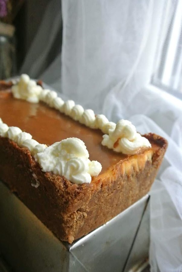 Tiene que estar cocido por los lados y un poquito blando por el centro, cuando ya esté cocido apagamos el horno abrimos un poquito psra que baje la temperatura y lo dejamos toda la noche dentro, a la mañana siguiente lo metemos en la nevera un par de horas antes de servir lo cubrimos on una capa de nata (crema de leche) y recién montada y otra capa de caramelo salado.