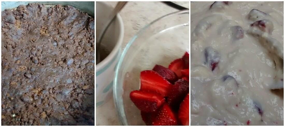 Batir el queso crema, junto al limón y la leche condensada, agregar 250 gramos de frutillas cortadas en rodajas a lo largo, y la gelatina sin sabor disuelta en agua tibia.
