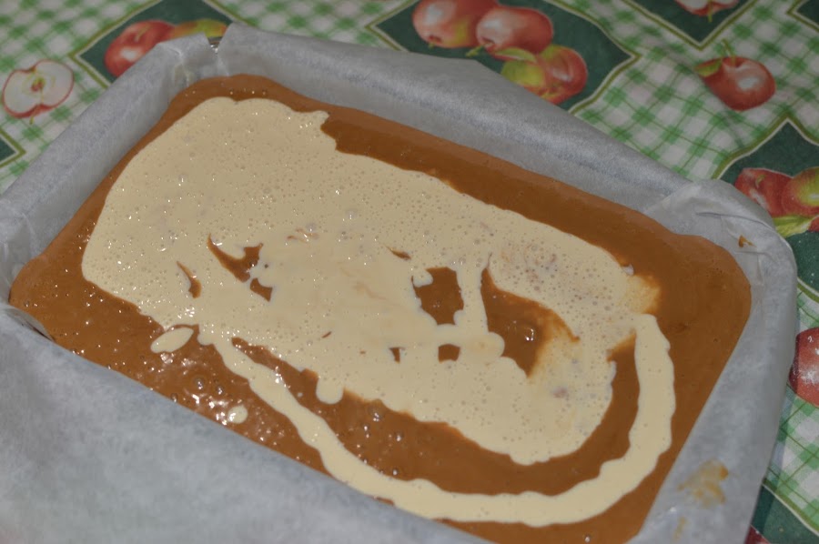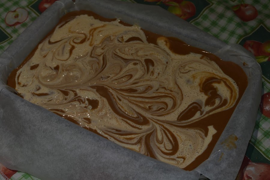 Echamos la mezcla sobre el brownie y lo mezclamos con ayuda de una cuchara para crear un diseño vistoso.