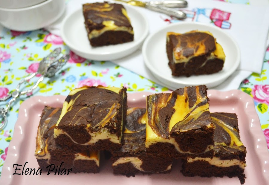 El pasado fin de semana os enseñé, a través de mi cuenta en Instagram, las fotos de un dulce con chocolate, de apariencia marmolada. Por entonces, no os dije nada más que próximamente escribiría la receta en el blog. Y, aunque con algo de retraso, ya os resuelvo el misterio.La receta es la de un brownie con tarta de queso.