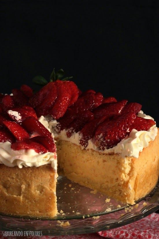 Si un cheesecake ya de por sí es rico... fijaros cómo queda con nata (crema de leche) y fresas.... De muerteeee!!