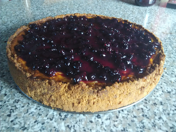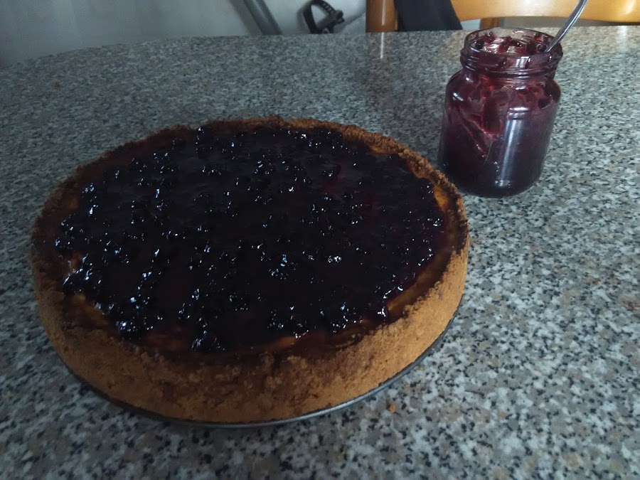 Se trata de una cheesecake con mermelada de moras casera. La mermelada la había hecho el mismo día que las muffins de moras, aprovechando que en la zona en la que las recolecté había muchísimas y no podría desaprovechar de hacer mi primera mermelada. Por ello dedicaré una publicación a hacer mermelada de frutos silvestres.