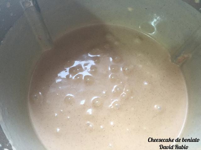 Ponemos todos los ingredientes en un bol y batimos con ayuda de una batidora. Tiene que quedar una crema fina y sin grumos.