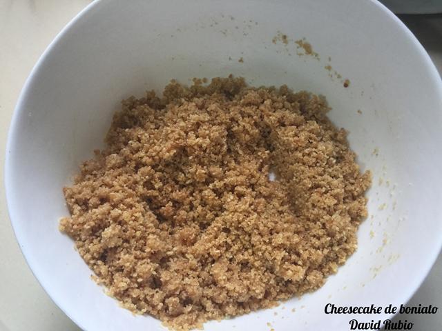 Mezclamos la mantequilla fundida con las galletas molidas hasta que tengamos una mezcla homogénea.