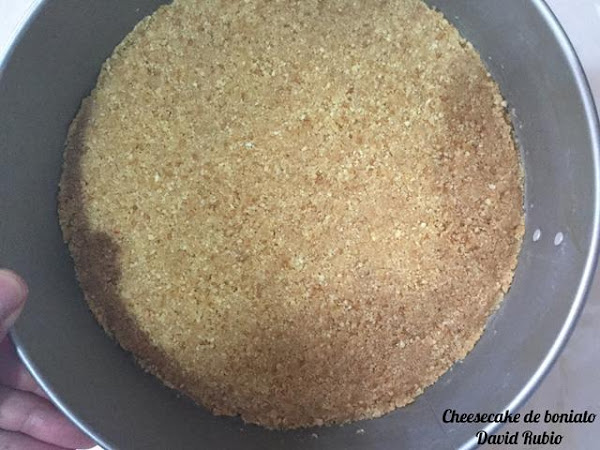 Extender la mezcla sobre la base de un molde desmontable y compactar con una cuchara.