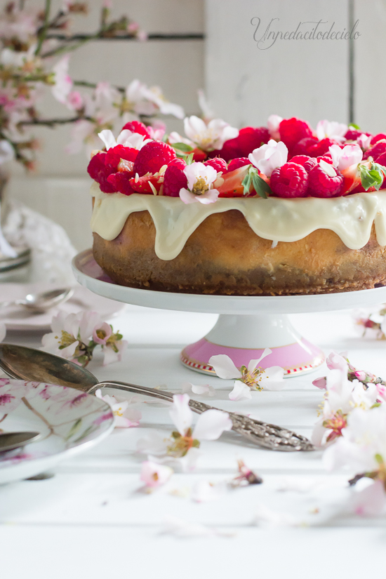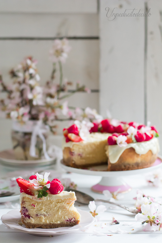 Hola cielit@s parece mentira pero así es, el día 13 de febrero este humilde blog ha hecho 3 añitos. Y para celebrarlo os he preparado este delicioso Cheesecake de Chocolate Blanco y frambuesas.