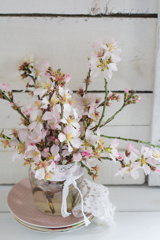 Decora con las frutas y la almendra de la manera que más te guste, yo también he puesto unas flores de almendro que tengo en mi jardín.