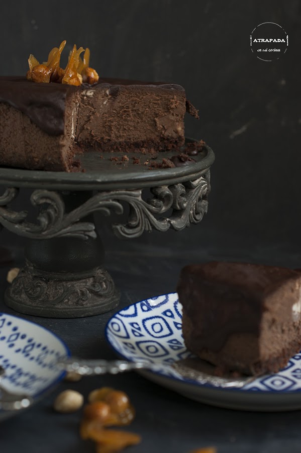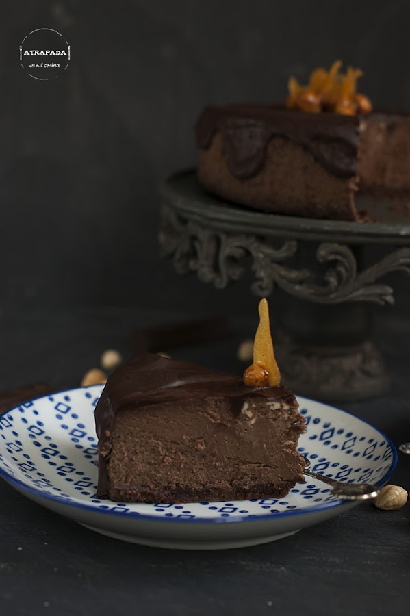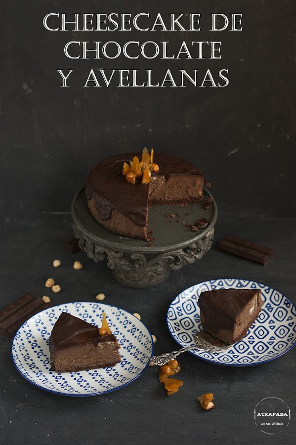 Hoy, y para acabar la semana, una tarta para los más chocolateros, y además amantes de las tartas de queso. Porque en esta tarta se funden chocolate y queso, además combinado con las avellanas que toman su protagonismo en la base de la tarta y en el topping, caramelizadas. No creo que necesite más presentaciones esta tarta....sólo que la vi en Pinterest, y me llevó al blog Sunshine´s Kitchen de donde cogí la receta.