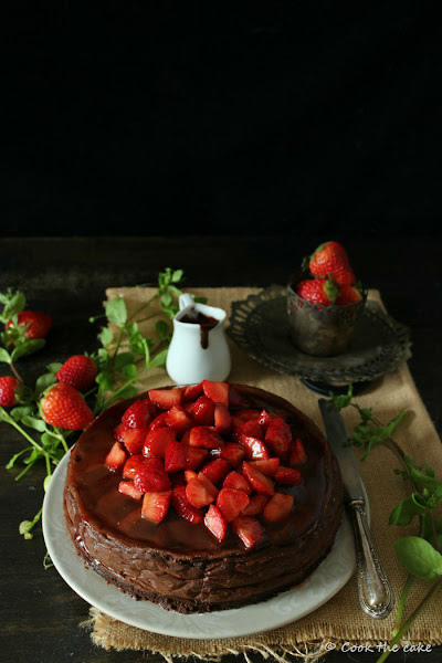 CHEESECAKE DE CHOCOLATE Y FRESAS MACERADAS EN
