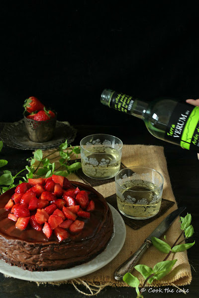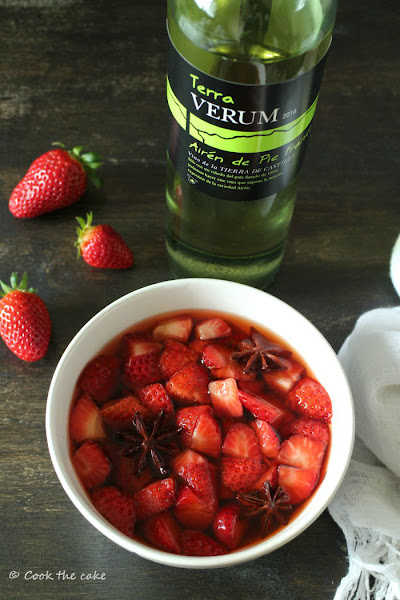 Quería darle un toque elegante y un poco más elaborado a la tarta y se me ocurrió que en vez de macerar las fresas en vinagre, podía hacerlo con un buen vino. Me acordé entonces de un vino blanco de la Tierra de Castilla La Mancha, de Bodegas Verum que probé en casa de mis padres en Navidad y que me sorprendió gratamente.