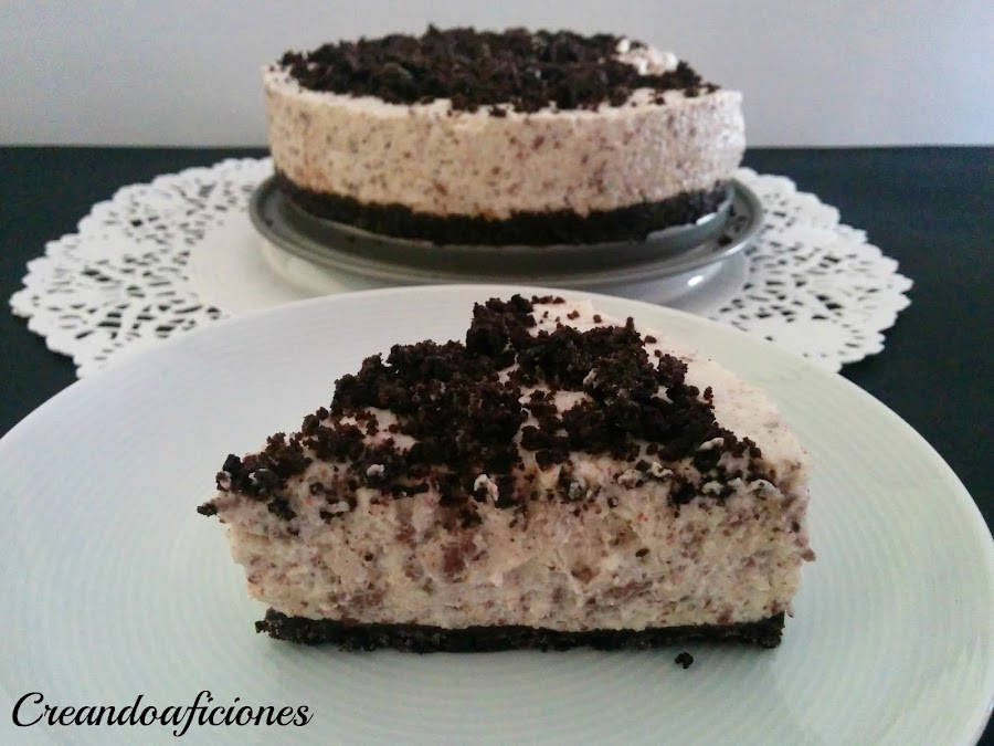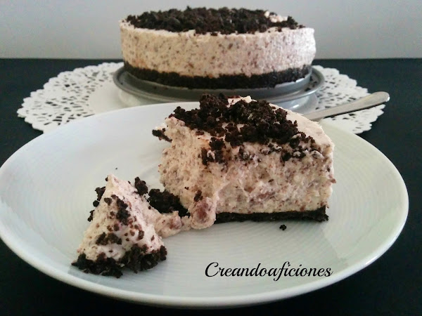 Un riquísimo postre frió, tan fácil y rápido de hacer que por lo único que hay que esperar es por el tiempo que tiene que estar en la nevera, para poder comérnoslo. La base de galletas que utilizo en casi todos los postres que necesitan galletas, son las galletas Oreo y ni que decir tiene, lo buena que es esta combinación con el chocolate. Para esta tarta he utilizado un molde de 18 cm de diámetro. Espero que os guste. Empezamos.