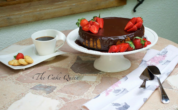 12. Desmolda con cuidado tu cheesecake y vierte tu ganache sobre la misma....ñam que delicia de tarta!!!!