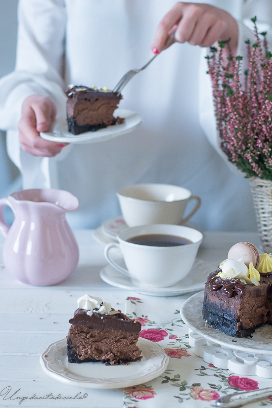 Así que cuando me enteré de que a el le gustaban los cheesecake, cosa que ya me vale no haberme enterado antes, pues en mi cabeza se abrió paso a pasos agigantados la idea de un cheesecake de chocolate.