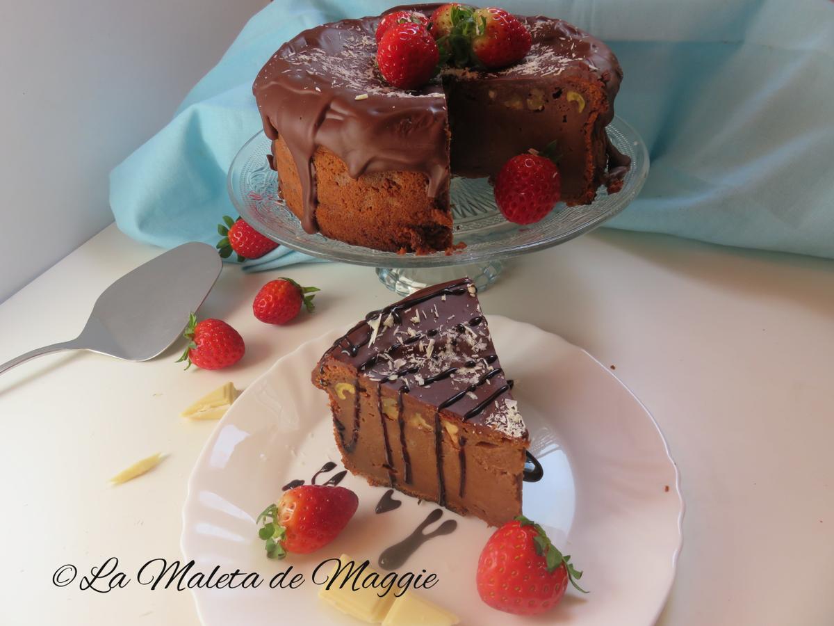Nosotras hemos terminado la decoración con unas fresas y virutas de chocolate blanco.