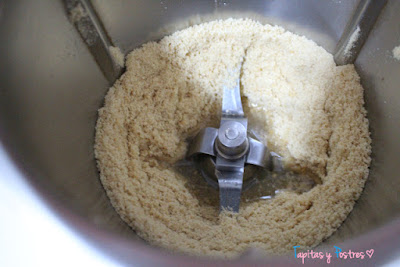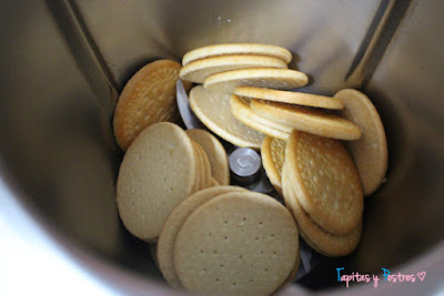 Comenzamos triturando las galletas con una batidora hasta hacerlas polvo. Yo usé thermomix, 30 segundos a velocidad 5.
