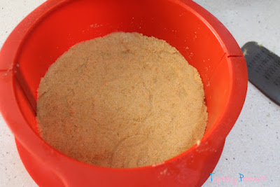 Derretimos el aceite de coco al microondas unos segundos y mezclamos con las galletas trituradas 20 segundos a velocidad 4.
