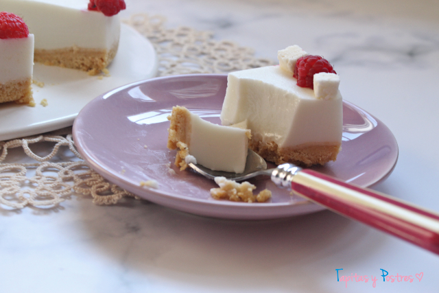Es una cheesecake suave, no muy dulce y con sabor a coco. Mantenedla bien fría y os encantará.