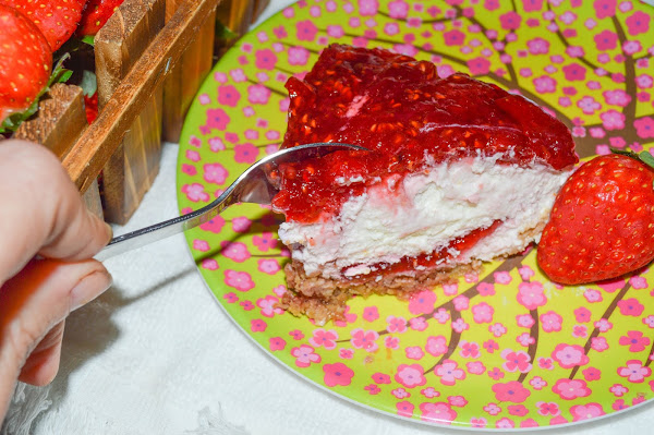 Esta receta no lleva gelatina sin sabor en la preparación de la tarta de queso la he preparado así simplemente para que tenga una consistencia mas cremosa y por ello lleva mas tiempo en la nevera y créeme cuando te digo que ha valido la pena