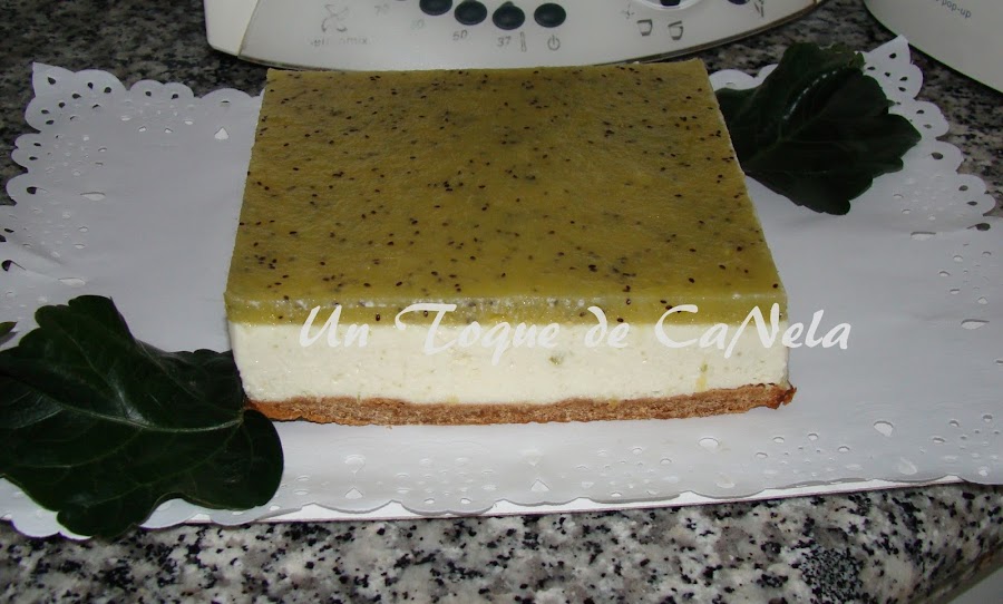 Triturar los kiwis con la miel y verter sobre la tarta.