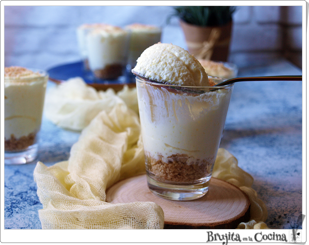 Bueno, la idea de hoy, es una cheesecake de limón, suave, cremosa,... en su versión vasitos con un toque de coco y de jengibre, porque creo que el limón y el jengibre le va fenomenal.