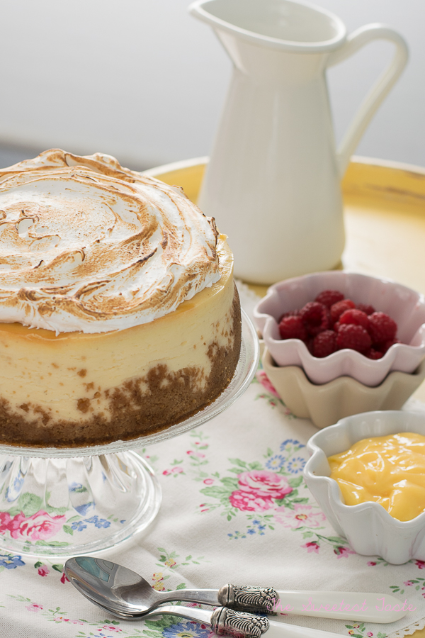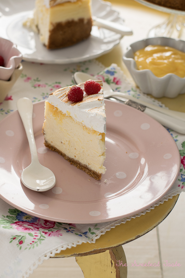 Si no os gusta el merengue no lo pongáis, si os gusta mucho ponedle el doble. Lo podéis acompañar de un poco de nata montada (crema de leche), como el cheesecake no es demasiado dulce le irá de perlas.