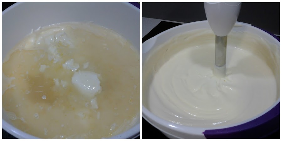 Ponemos todos los ingredientes en un bol (excepto las galletas) y lo mezclamos bien hasta que quede una crema muy fina.