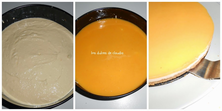 Rellenar el molde y refrigerar dos horas. Cuando esté cuajado añadir el curd. Refrigerar dos horas más