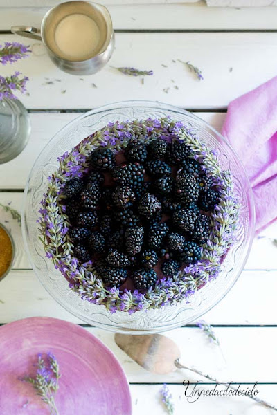 Desmóldalo y decóralo como más te guste, yo usé lavandas y moras, porque los hice hace unas semanas cuando todavía había lavanda, pero usa tu imaginación y te quedará estupendo.