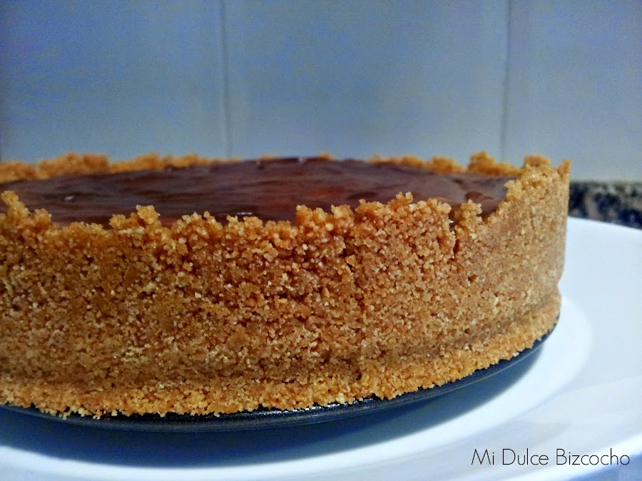 Forramos la base y los laterales del molde con el polvo de galletas e introducimos en la nevera.