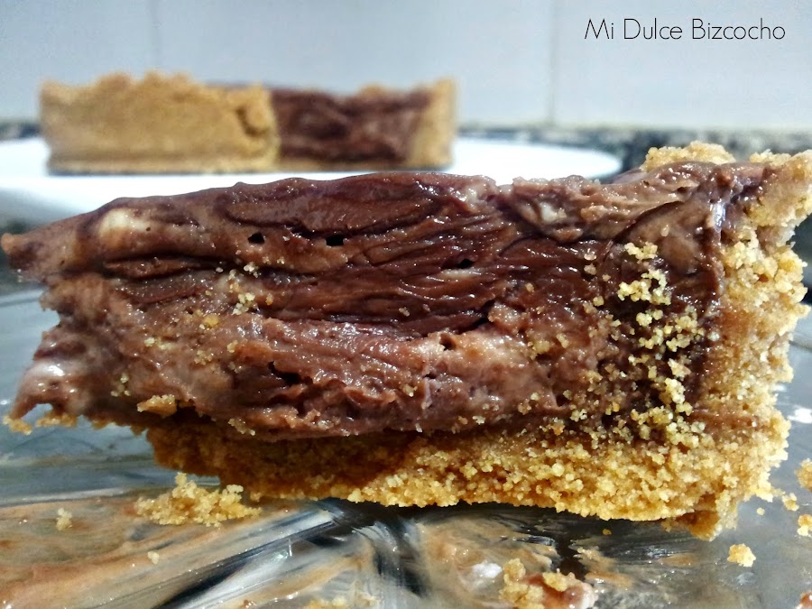 Vertemos la Nutella y removemos un poco, sin mezclar completamente el queso con la nutella (si queréis que os quede la tarta a diferentes tonos como en las fotos, si no podéis remover del todo hasta que se integren ambos colores)