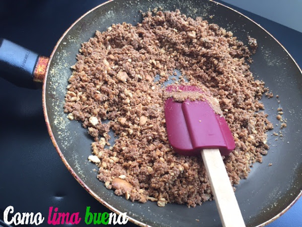 Derretir la manteca en una sartén y luego agregarle las galletas y 50 g de Nutella.