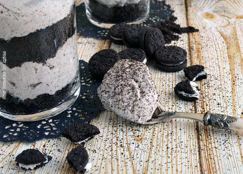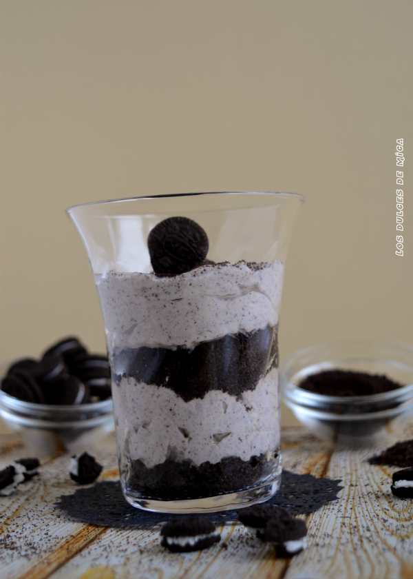 A la hora de servir coronamos cada vasito con una mini galleta Oreo.