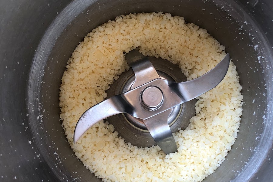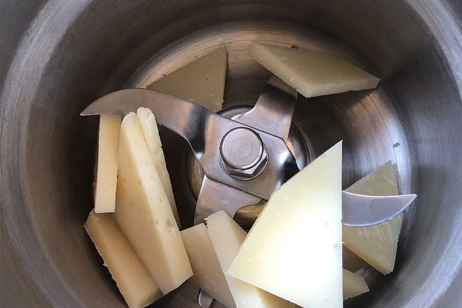Trituramos en una picadora o procesador de alimentos el queso viejo tostado para que quede en trocitos muy pequeños.Paso 2