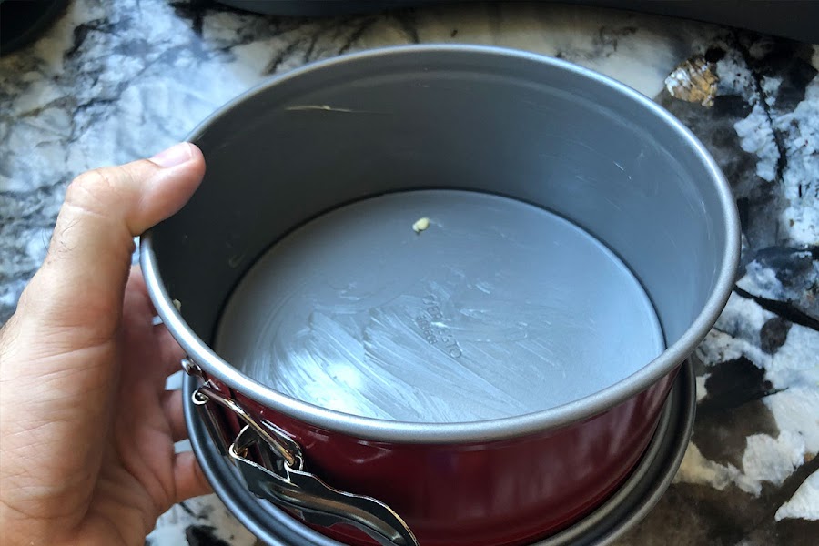 Engrasamos con mantequilla un molde desmoldable de 18 cms.