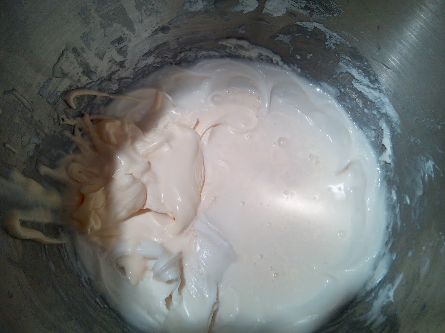 Luego agregamos la nata (crema de leche) líquida y batimos por unos segundos más.