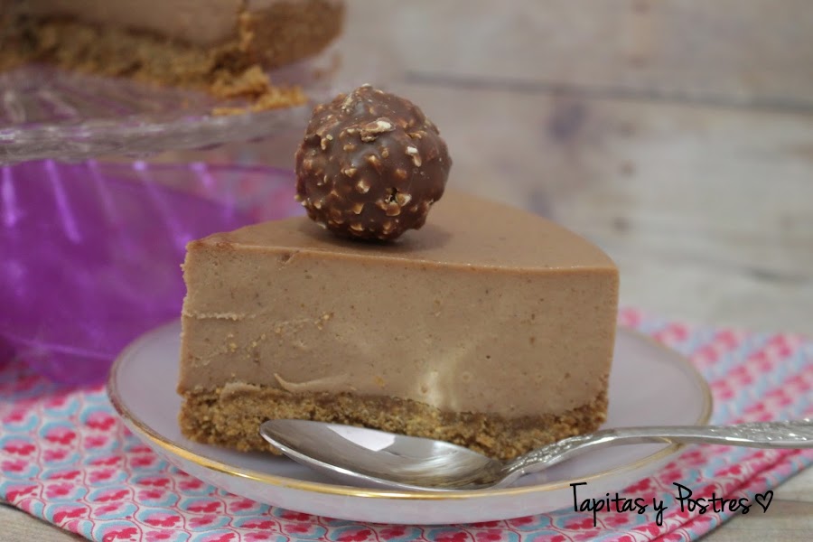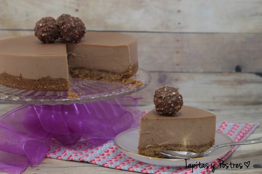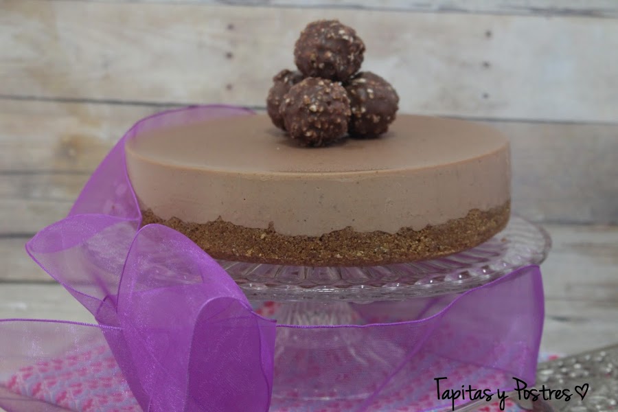 Ya tenía en el blog una Tarta Ferrero que no se parece en nada a esta en cuanto a preparación, aunque algo si se parecen en el sabor. Las dos están exquisitas, pero para no repetir receta por lo del reto semanal, me inventé esta con queso. Podéis ver las dos recetas y comparar. Yo os recomiendo las dos.