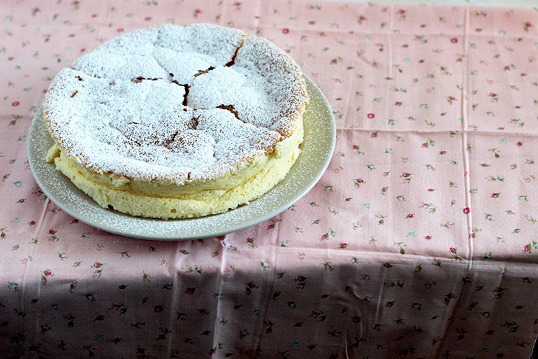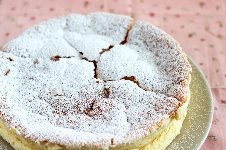 Está receta es increíble, no es muy dulce pero realmente deliciosa. y su textura es impresionante, realmente te estás comiendo un bizcocho con una ligerísima textura a cheesecake, el fallo? no controlar la temperatura del horno.
