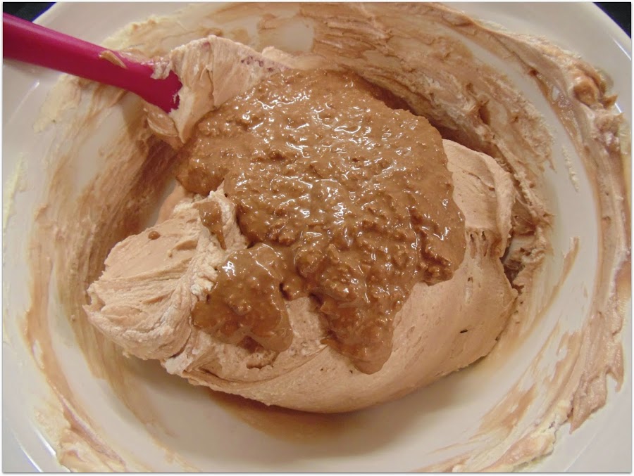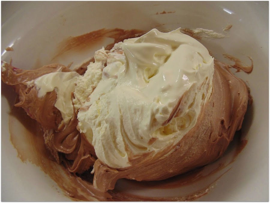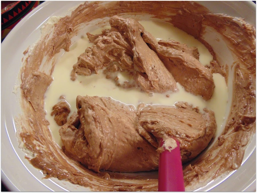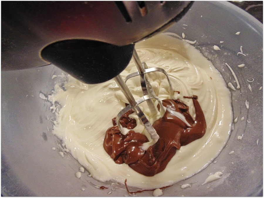 Agregamos con movimientos envolventes la nata montada (crema de leche) a nuestra base y, a continuación, la pasta de kinder bueno ya atemperada.