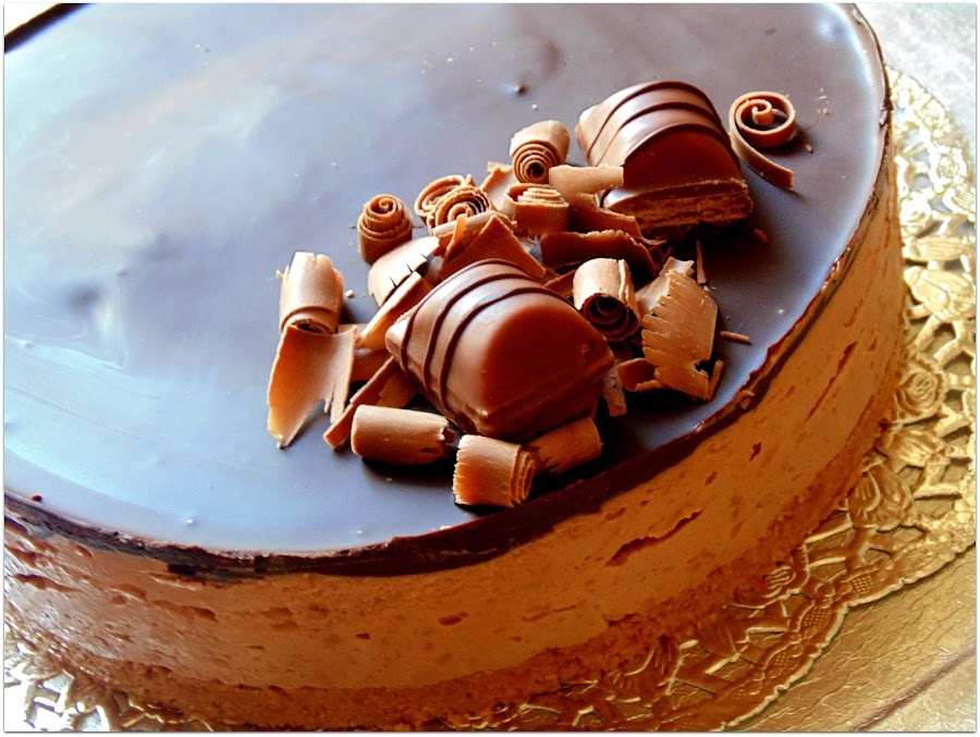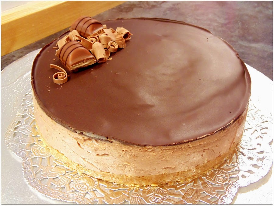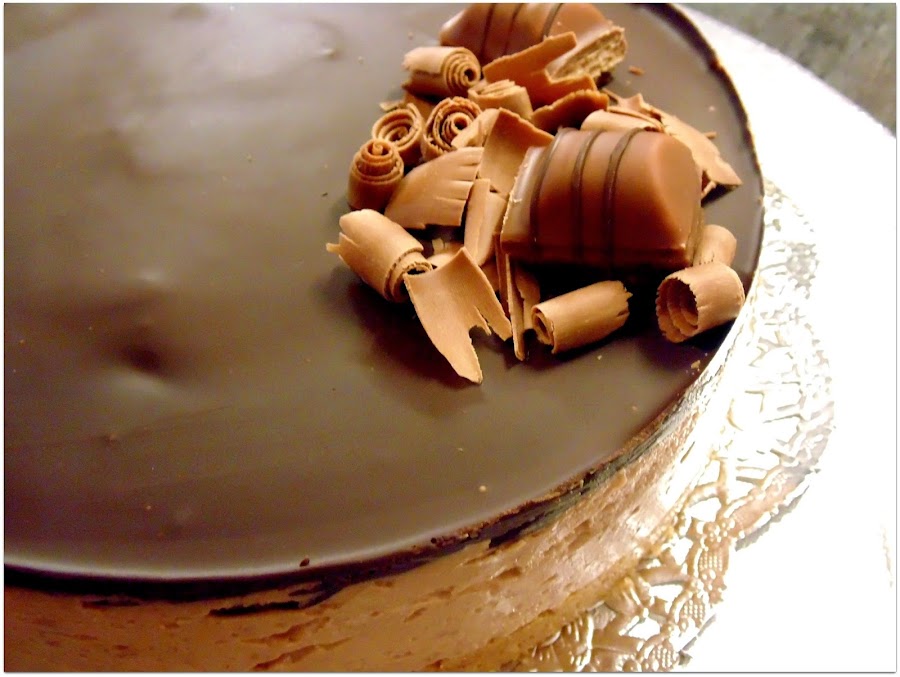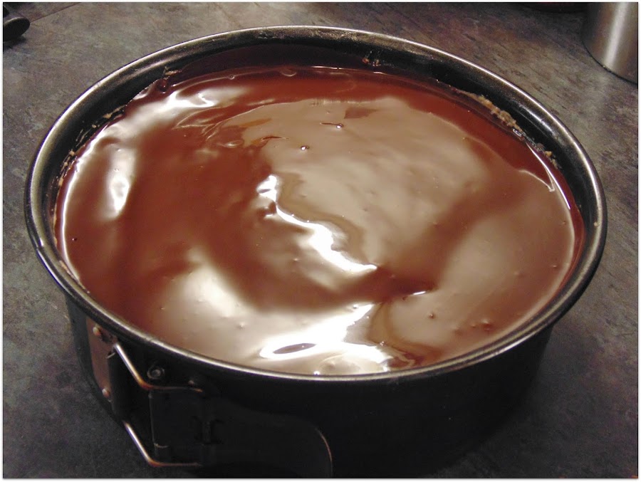 Para la cobertura disolvemos al baño maría el chocolate de cobertura y vertemos sobre la tarta para que queda una capa muy fina. En mi caso utilicé un cacao del 72%. Resultaba un buen contraste amargo-suave en el resultado final del postre. ñammm