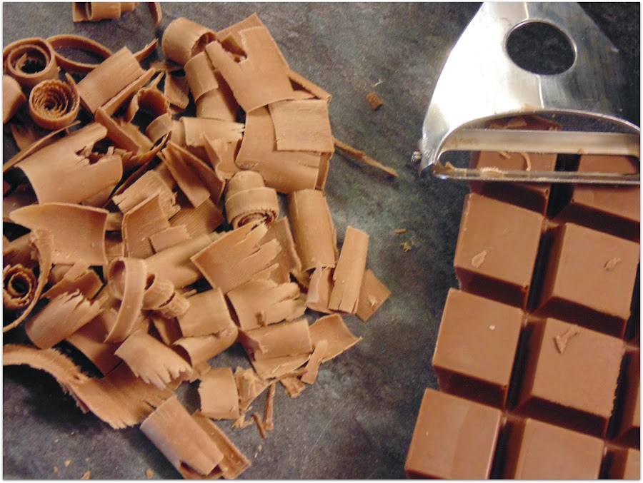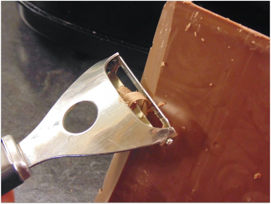- 1 tableta de chocolate con leche gruesa y un pelador para hacer virutas