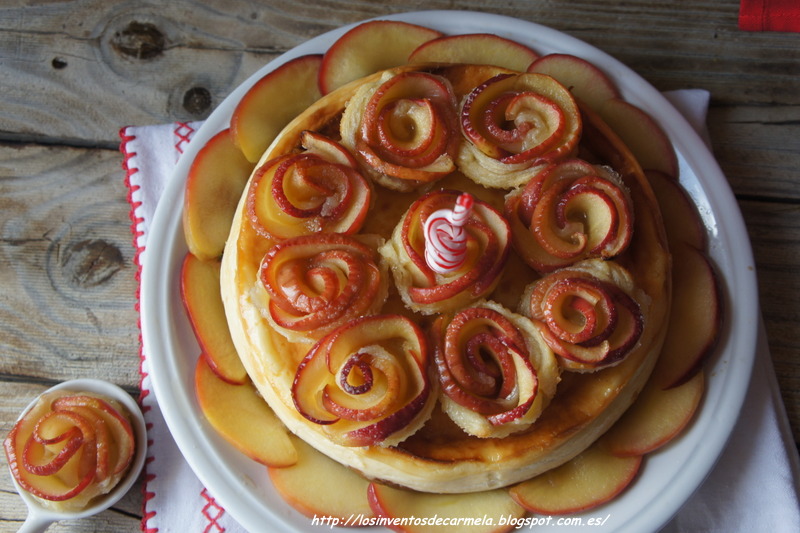 HORNO - CHEESECAKE CON BASE DE SPÉCULOOS Y CORONA DE ROSAS DE MANZANA