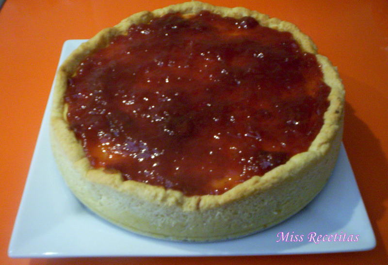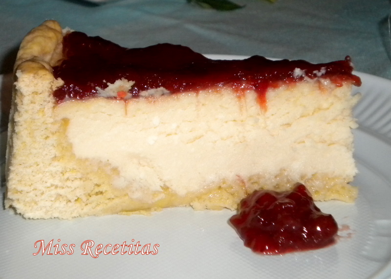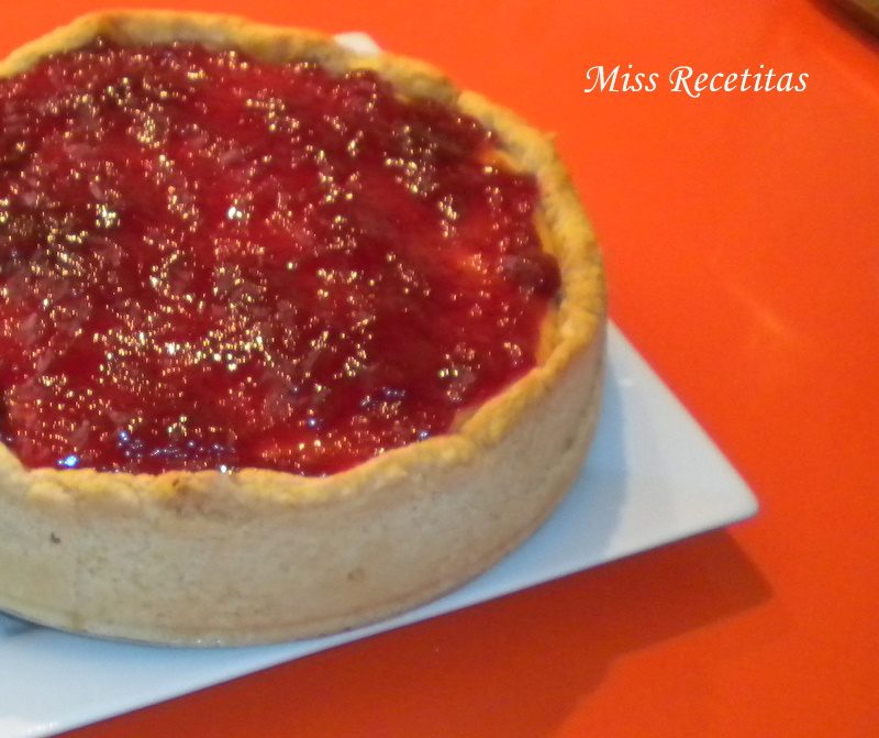 Una vea fria la tarta se acompaña de mermelada del sabor que preferais, yo en este caso que usado mermelada de fresa y estaba de muerte!!