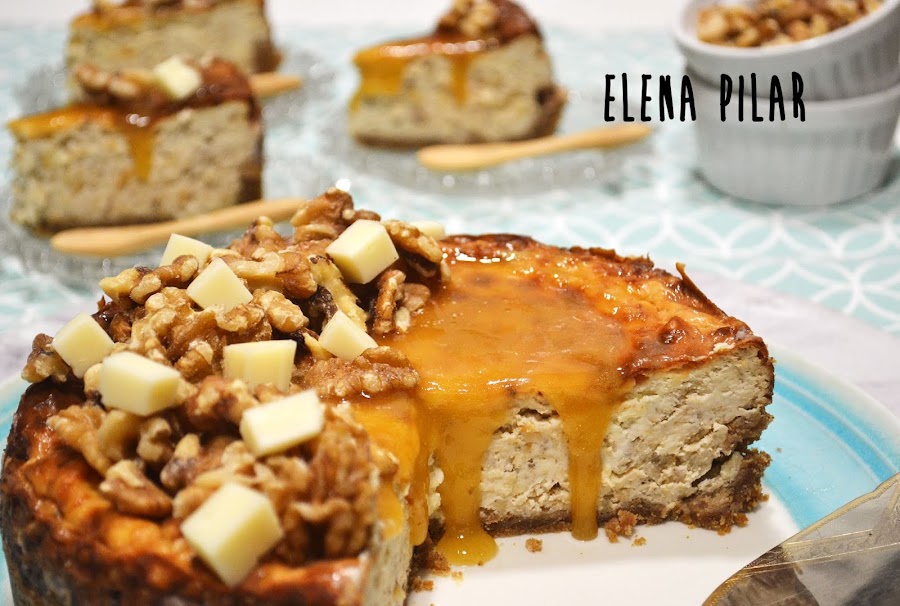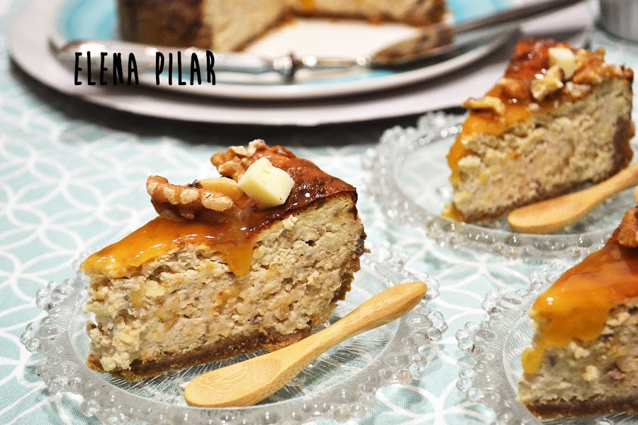 Pero las bondades de esta tarta no se quedan atrás ^_^. Tierna, cremosa y con una combinación de sabores absolutamente irresistible. Es una mezcla clásica, de sobra conocida por todos (queso, nueces y miel), que igualmente funciona fenomenal en forma de tarta de queso salada.