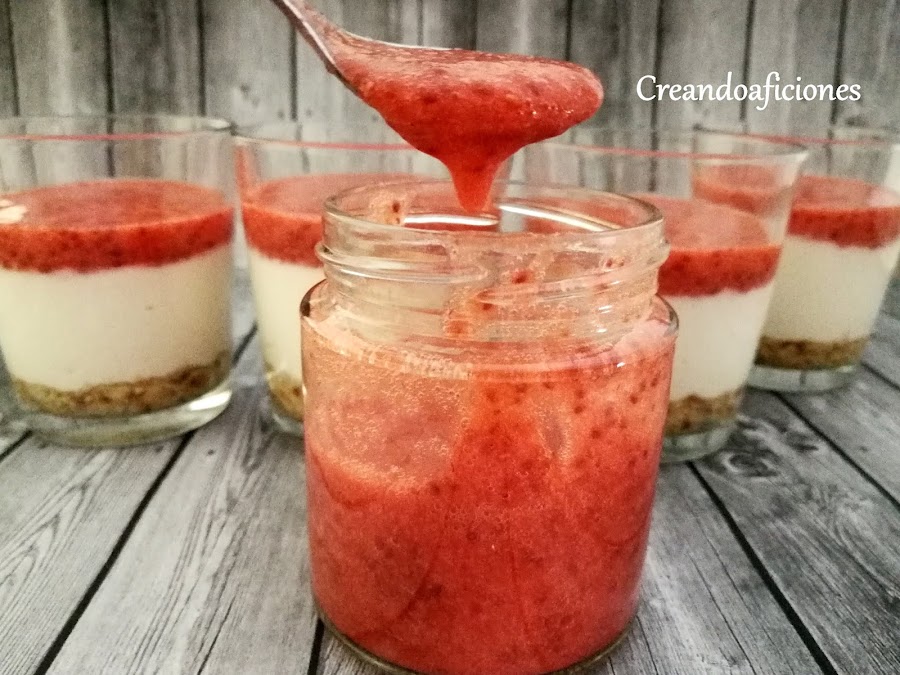 Y por último ponemos la mermelada de fresa y reservamos en la nevera para que se enfrié.Que disfrutéis!!!!!!!!!!!!!!!!!!!!!!!!!!!!!!!