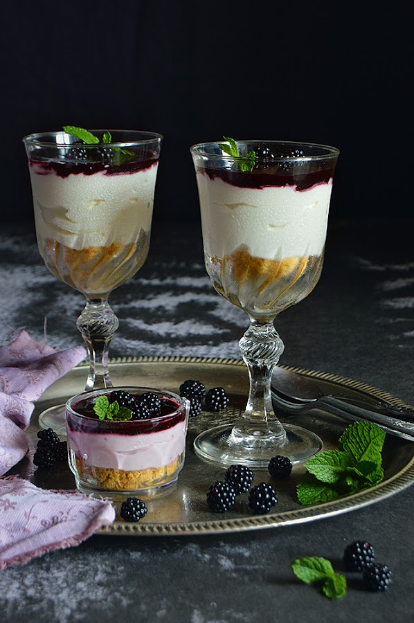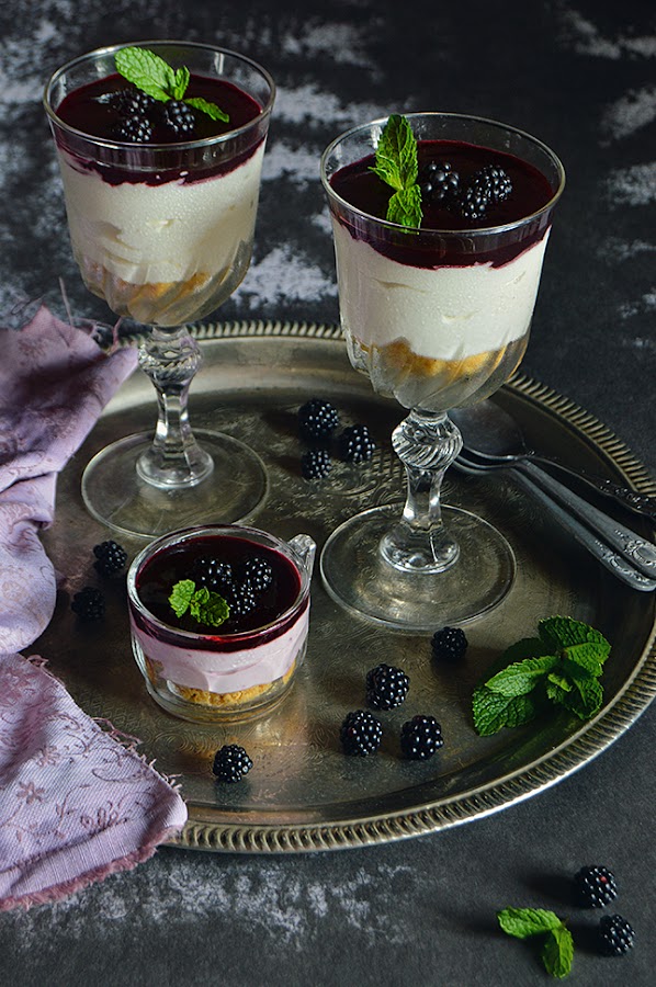 A pesar de que no me gustan las moras, me encanta ir en su busca. El año pasado cogimos un montón con las que hice licor, mermeladas y estos sencillos y deliciosos cheesecakes que os traigo hoy.