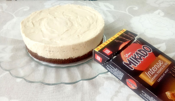 En seguida me puse a pensar y me acordé que me encanta la tarta de queso, y encontré una receta de tarta de queso con caramelo, y vi que le vendría muy bien a estas galletas.