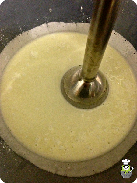 Para preparar la masa, comenzamos por introducir en un bol el agua tibia junto con el aceite de oliva, la sal y el azúcar. Mezclamos todo con ayuda de la batidora eléctrica hasta emulsionar todos los ingredientes y obtener un líquido blanco. Añadir la levadura en polvo y volver a batir.