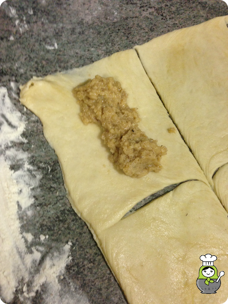 Para preparar las casadielles, se estira muy bien la masa sobre una superficie enharinada con ayuda del rodillo y cortamos con un cuchillo rectángulos. Colocamos el relleno sobre cada una de ellas, enrollamos, cortamos la masa sobrante en cada lado y sellamos con ayuda de un tenedor.