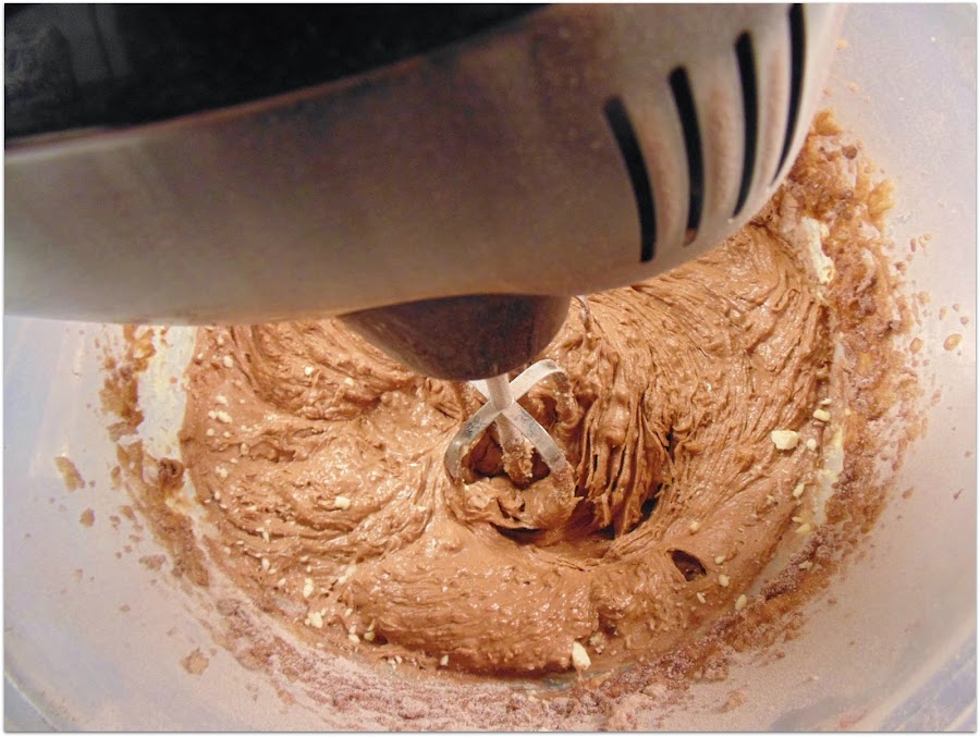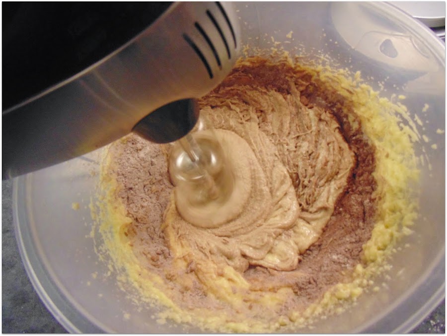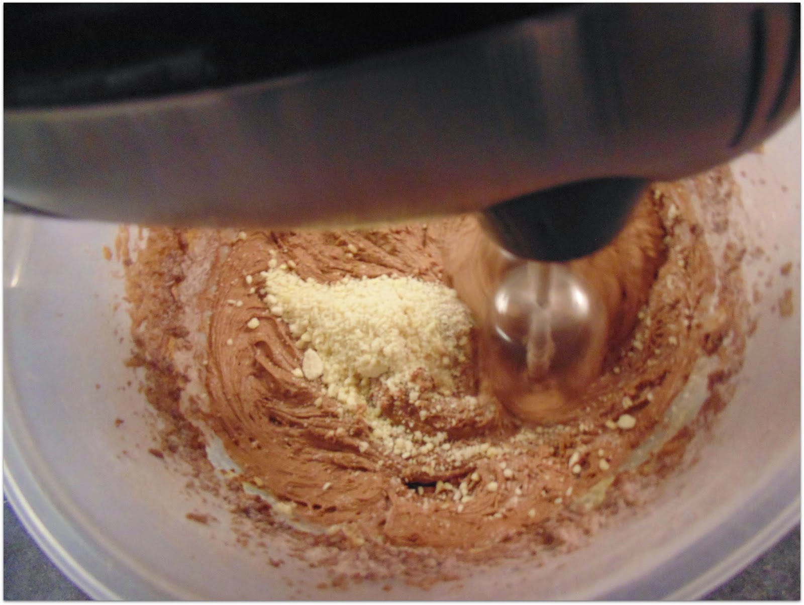 Preparamos los ingredientes secos excepto la harina de almendra y tamizamos. Añadimos esta mezcla poco a poco.